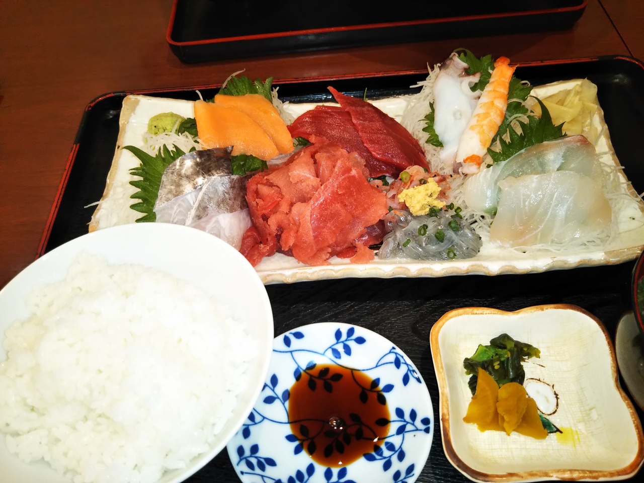 夫は鮪丼、大きな器にどーんと、まぐろが乗ってきて、ご飯も見た目よりも多く、満足していました。