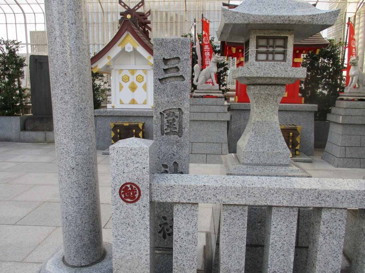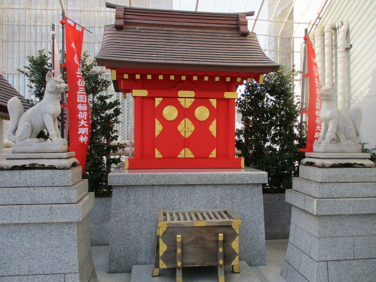 日本橋三越の屋上にある神社です。屋上への扉を出て左手にあります。神社の名前ですが、見たことがない漢字で最初読み方がわかりませんでした。大正三年よりこの屋上にあるそうです。墨田区向島に本社があり、こちらは分社です。きれいに保たれています。