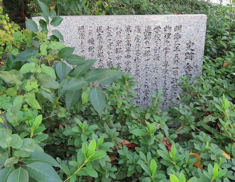 「舎密局(せいみ・きょく)」とは明治維新期における化学技術の研究・教育のための公的機関。大阪のほかに京都にもありました。本町通り沿い、大阪府警本部の建物の南西側の植え込みのなかにあります。碑そのものはほぼ読めません。それにしても草ぼうぼうで、碑文は半分ちょっとしか読めません。どなたの管理地が知りませんが、まったくだいじにされたないなあ、が正直な感想です。