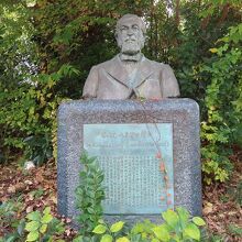 舎密局跡の碑がある一角に胸像が置かれています。ハラタマ博士。オランダ人だそうです。初めて名まえを聞きました。舎密局の教授だった人物ですから、明治の初めのお雇い外国人の一人ですね。舎密局が三高から京大への源流なのだそうです。