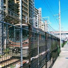 ほとんどの区間が高架になっている大阪環状線、大阪城公園駅周辺が非高架として有名ですが、新今宮から天王寺への内回りでも一部非高架で道路と併走する区間があります。新今宮は高架、天王寺は地下なのでその間になります。