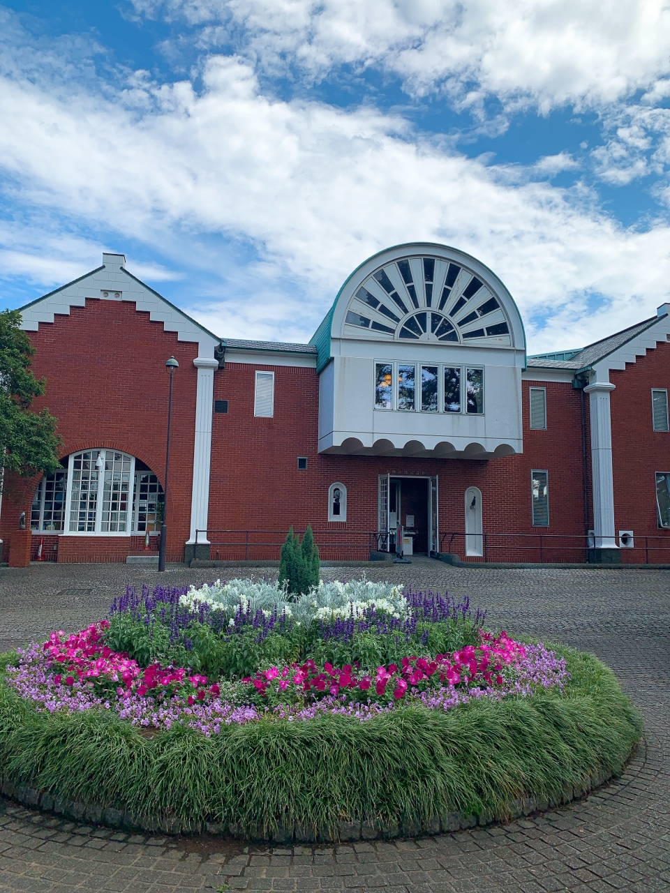 記念館の建物の外観は曲線を描いた正面と赤煉瓦造りが特徴です。