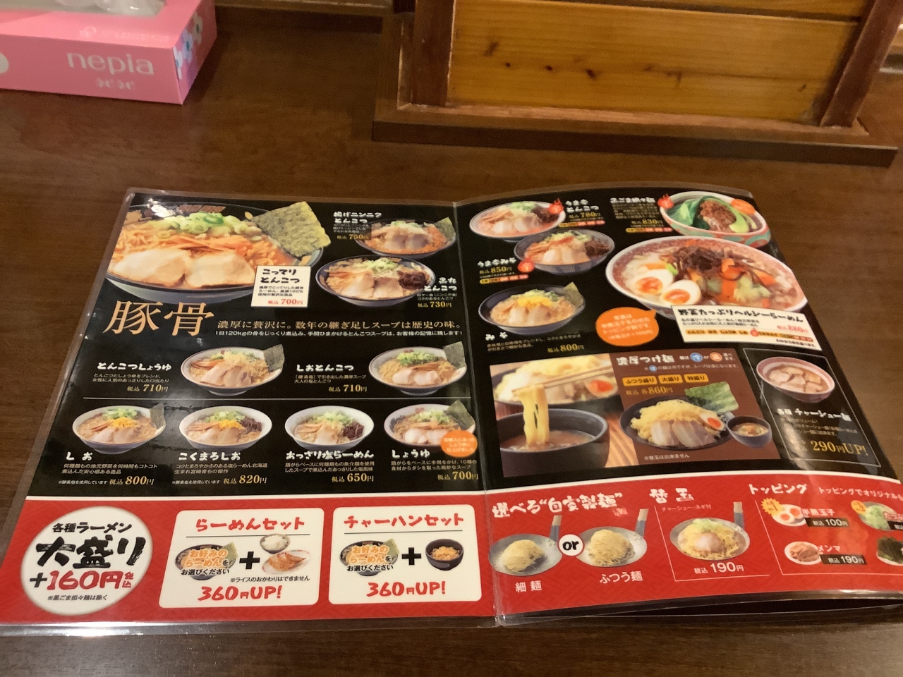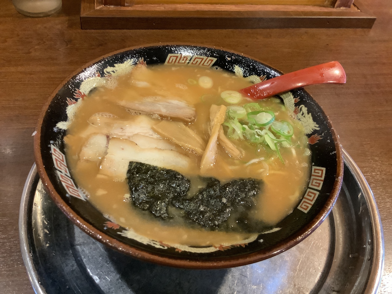 あじさい園に行っての帰りにお昼を何処で食べようかとGoogleマップで検索してラーメン屋さんを数軒見て風来軒さんが良いかなと、ここは都城に出かける時によく通る道でいつも駐車場が満杯になっています。人気のラーメン店なのかと思い入って見ました。13時を回っていたのでそんなに多くはなかったです。メニューを見るといろんな種類のラーメンがありましたが私はこってり豚骨ラーメンをオーダーしました。麺の硬さ、太さ、スープの好みが選べるようです。カウンター席が15席、テーブル席が1席、座敷テーブル席が3席ありました。