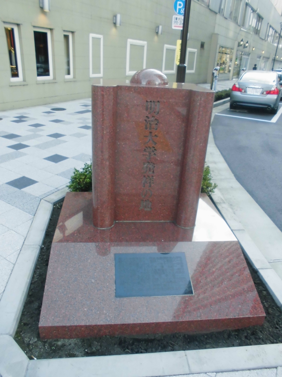 明治大学といえば京王線の明大前駅や小田急の生田あたりにキャンパスがあるのでそちらの地域を想像します。でも設立当初は銀座にあったというのをここに来て初めて知りました。わずか5年間しかなかったそうですが、こんな歴史を知ってまた一ついい気分になりました。