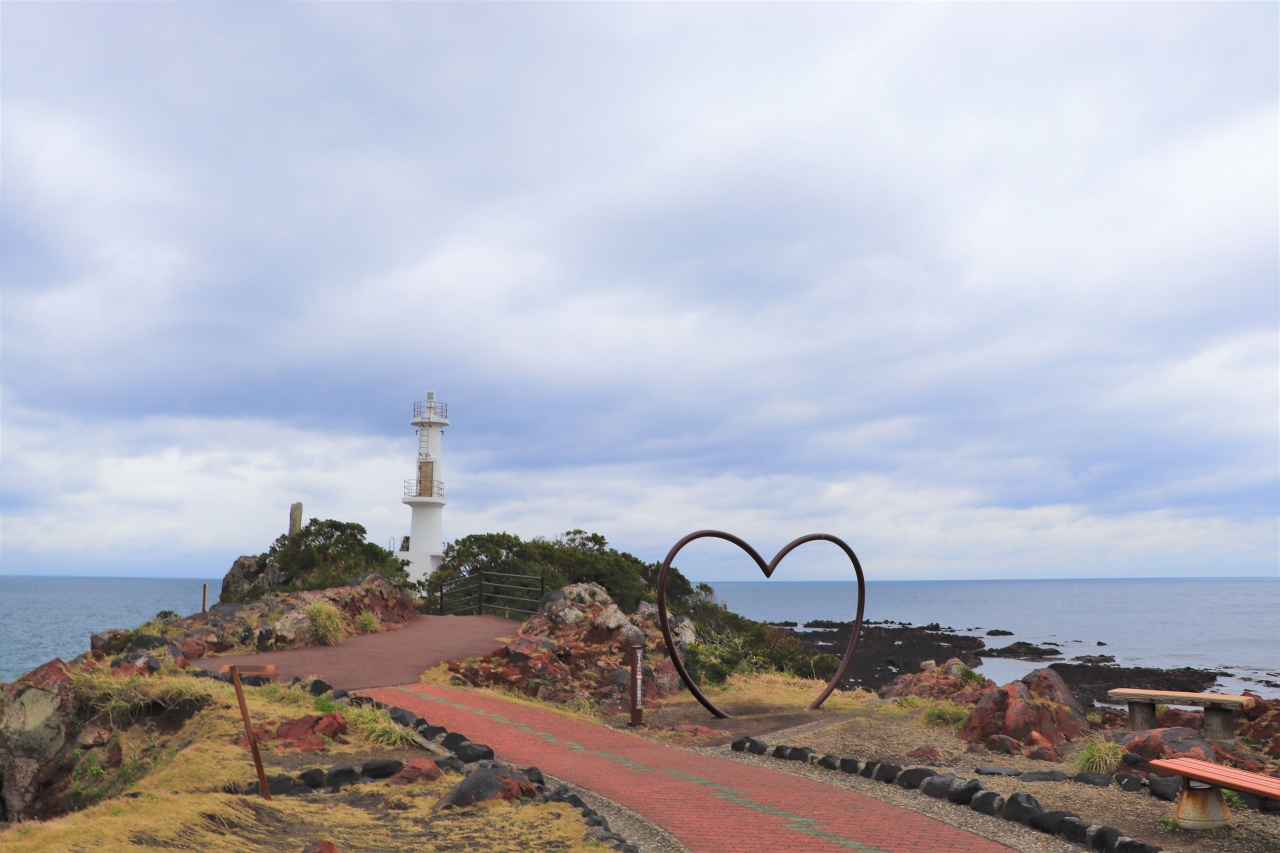 灯台の手前にはハート型のオブジェがあり、確かに雰囲気はロマンチックなのかもしれませんが、ごめんなさい…、私にはどの辺が、“恋する”にあたるのかがイマイチ分からなく、どちらかと言えば、灯台の下に広がる火山性の地質の方が興味深かったです。