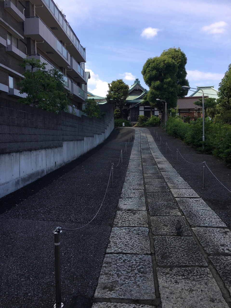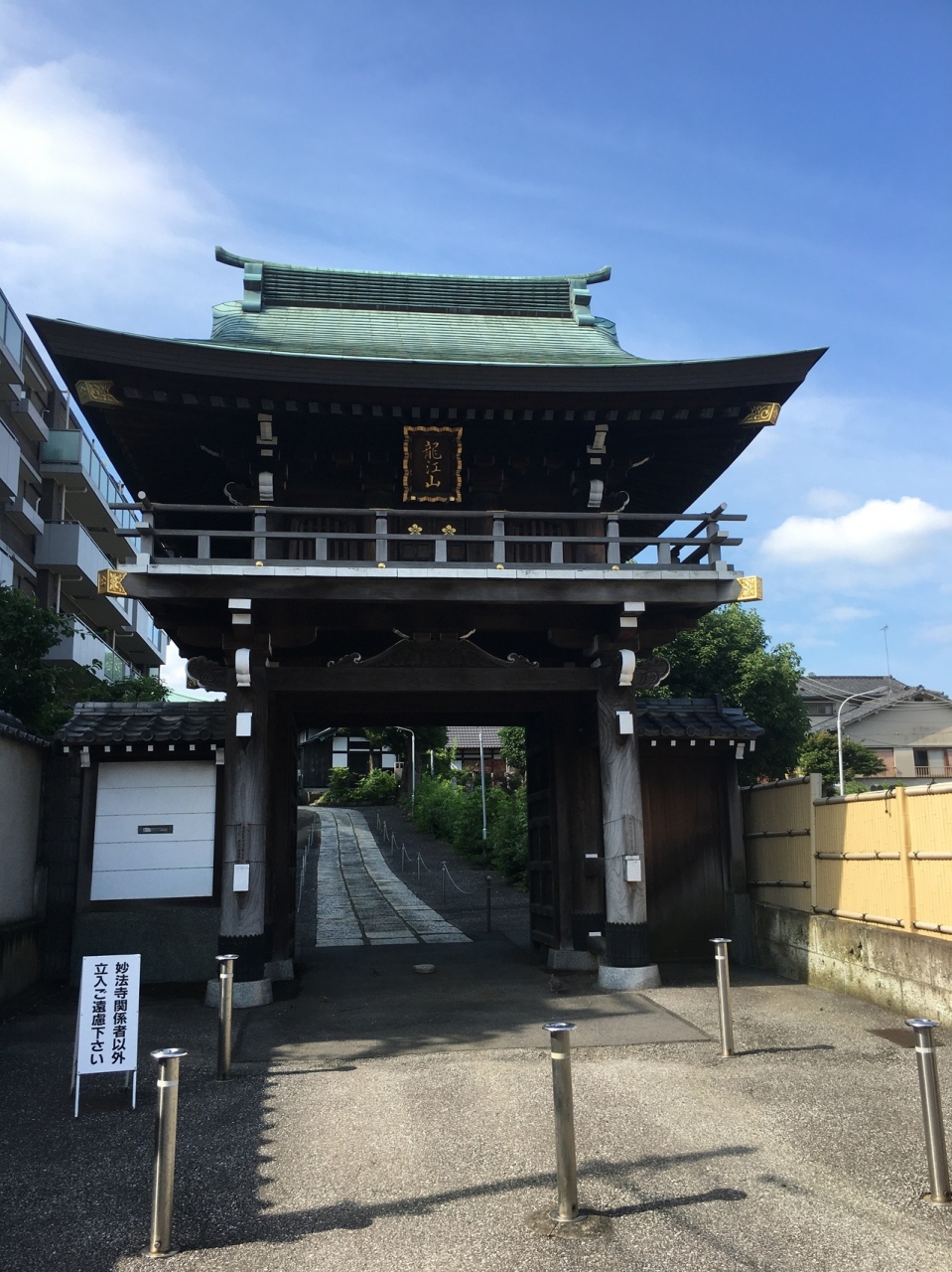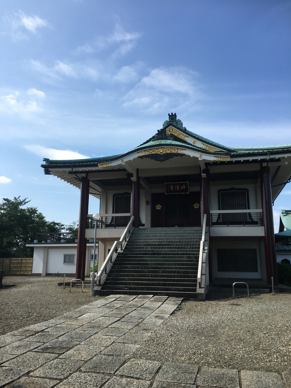 竜宮城のような山門を潜ると、ながらかな坂で上がると境内、2階建ての本堂がありました。屋根がエメラルドグリーンで目立っていました。地面は舗装され近代的な感じがしました。隣の妙国寺とは壁で仕切られていましたが、本堂付近から直接行くことが出来ます。