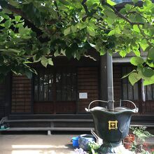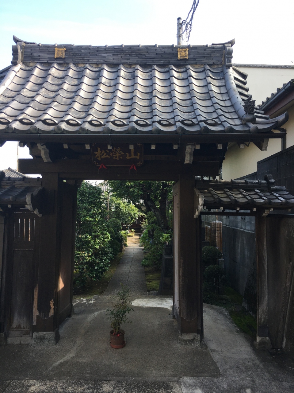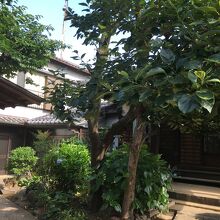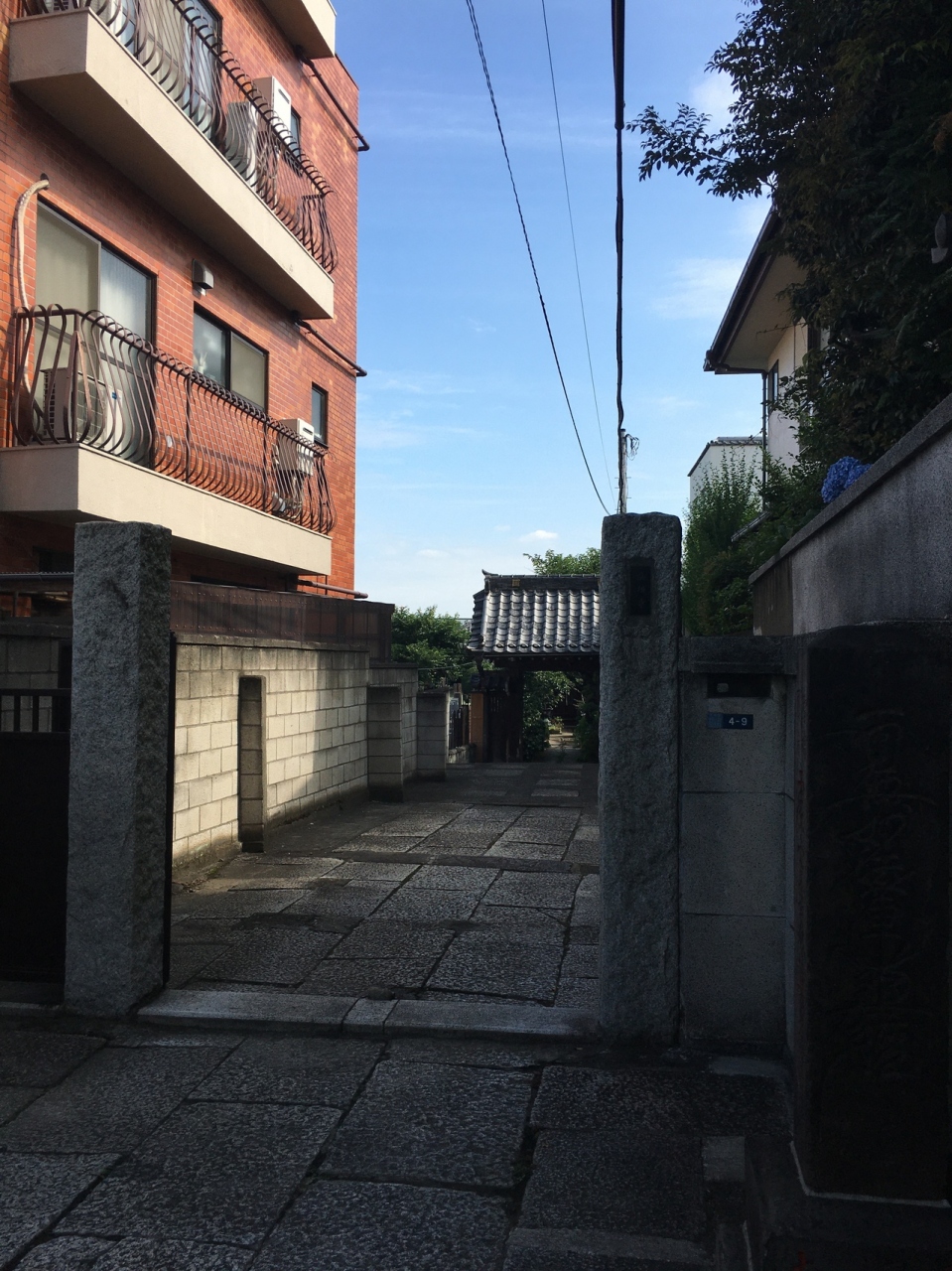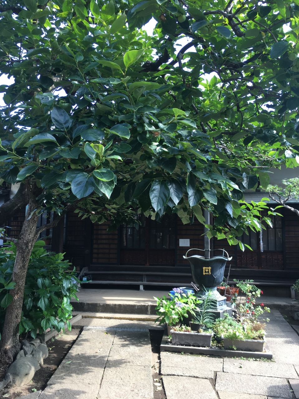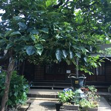 出入口が横の建物に挟まれている感じでしたが山門は良い雰囲気を醸し出し、あじさいの花が綺麗に咲いていました。本堂までは細い小道を通り左側にはお墓がありました。木々が植わり枝が伸びている木が多かったです。古い本堂でした。