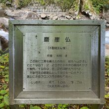 その建物から対岸の岩壁をじーっと見ると、最初は識別できなかったのですが、よく見ると仏様の顔があるのが分かりました。説明板もありました。作者不詳とのこと。