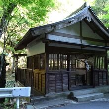 滝ノ谷不動峡に向かう途中、右側に滝ノ谷川が見えます。その川側に木造の建物が現れます。賽銭箱があるので神社かな?