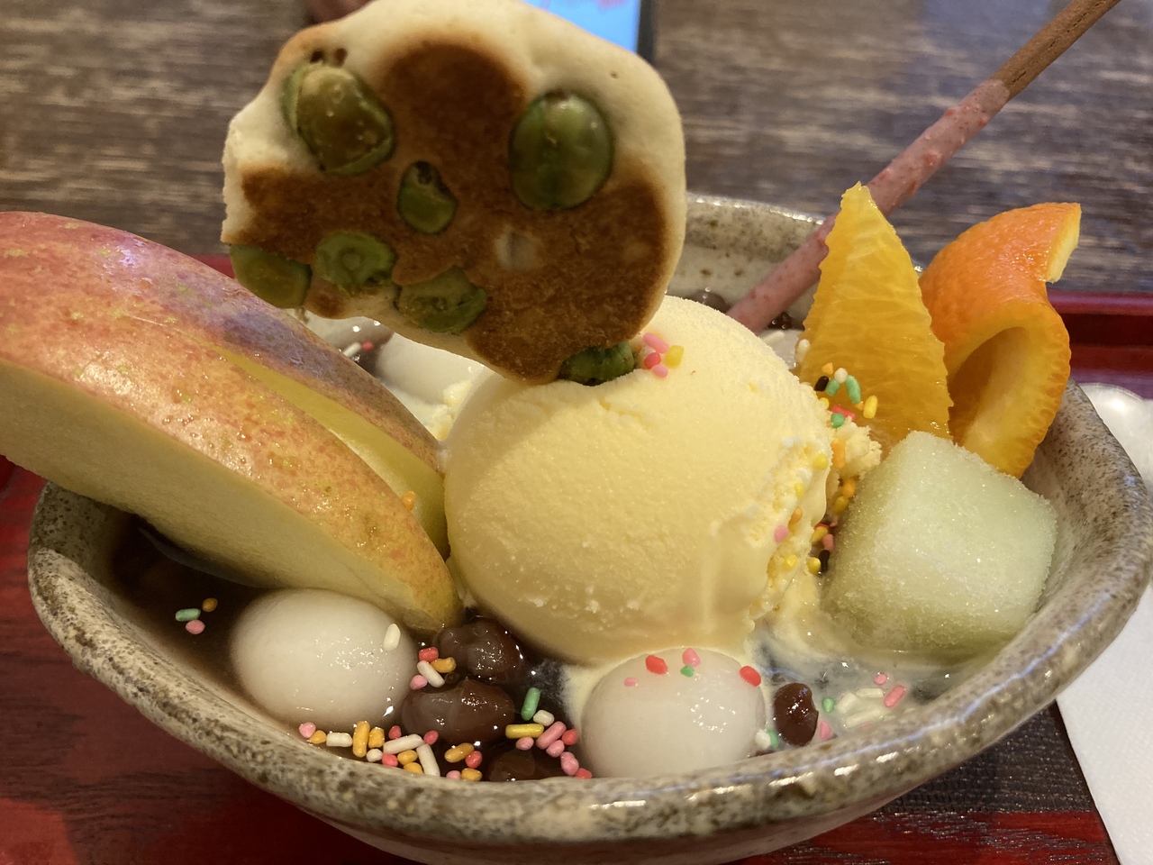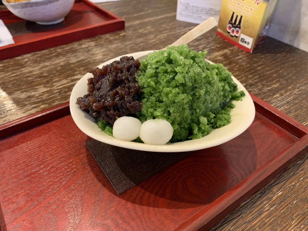 宇治金時を食べながらゆっくり休めて足の疲れも回復することができます。