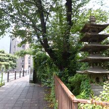 「新富橋」はかつての築地川に架かる橋のひとつです。とても狭い道で橋自体も小さくのどかでどこなノスタルジックな光景でした。ひとつ南側の「三吉橋」が交通量が多く大きな橋なのとは好対照です。橋のたもとには小さな五重塔があるのですが、案内板などがなく細かい事は分かりませんでした。