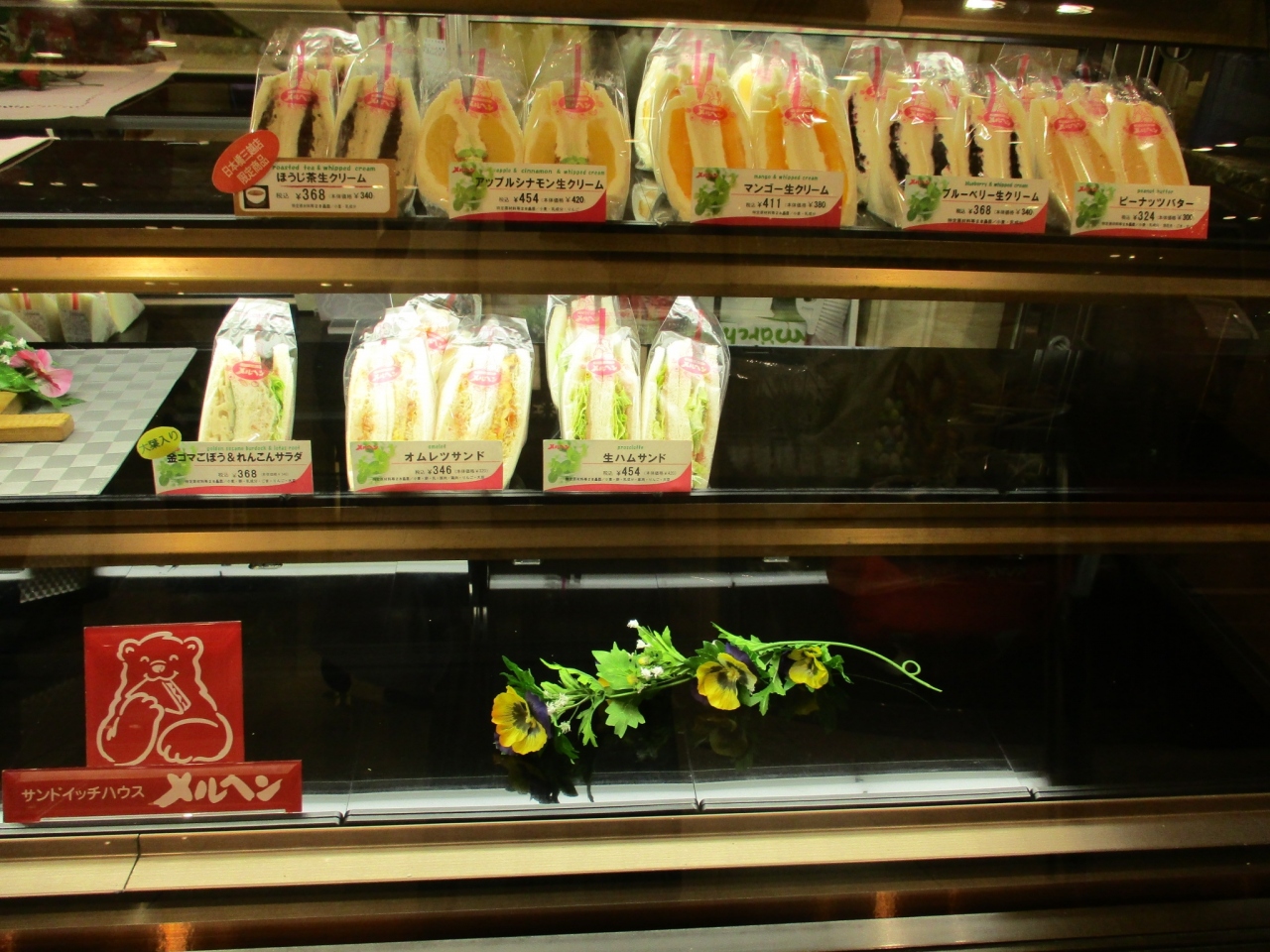 サンドイッチ専門店です。日本橋三越の地下食料品売り場にもお店があります。定番・総菜系・フルーツサンドなど種類が豊富です。夕方ごろに行ったので商品はかなり少なくなっていました。ショーケースにきれいに並んだサンドイッチ、特別な感じがします。