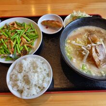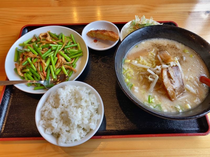 豚肉とニンニク芽炒め定食750円(税込)を注文。味付けはメチャ濃いということもなく、食べやすかったです。ニンニク芽もシャキシャキして美味しかったですね。