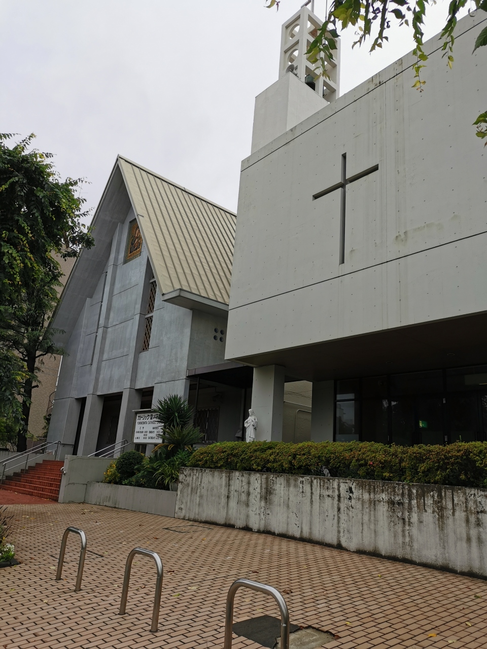 鎌倉観光。早朝車を駐車場にとめてから自転車で散策です。国指定史跡の若宮大路の二ノ鳥居から八幡宮に向かう途中にカトリック雪ノ下教会がありました。二ノ鳥居の近くにある雪ノ下教会はプロテスタント教会だそうです。こちらの教会は教会らしい(?)感じです。古都鎌倉に教会は意外な様で雰囲気はマッチしていました。