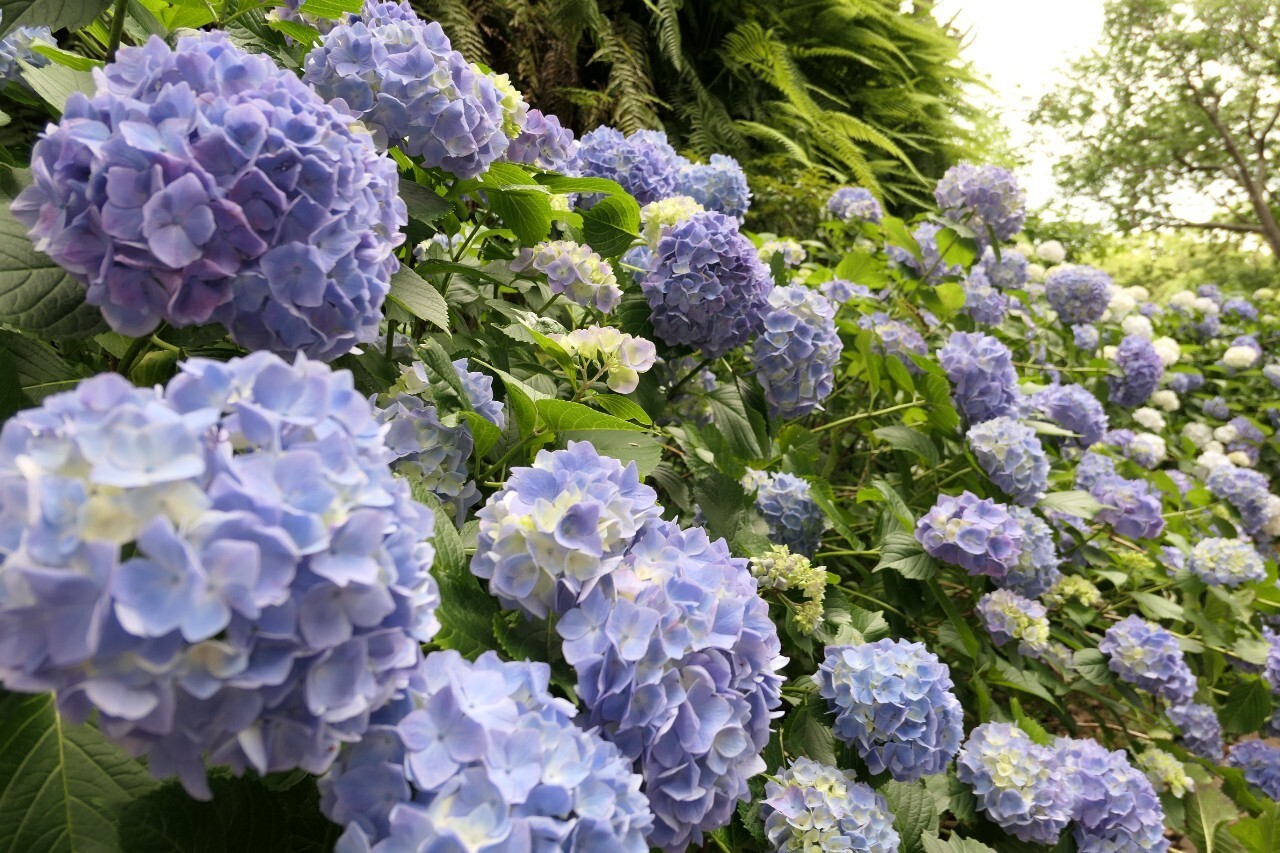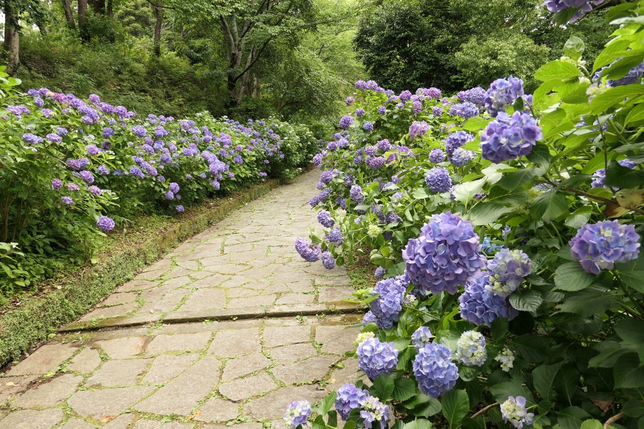 紫陽花を見に初めて行きました。さすが15万株、紫陽花に囲まれるような景色もあり素晴らしかったです。舗装された道もありますが、足場が悪いところもありますのでスニーカーで行くのがベスト。ペリーロードにはおしゃれなカフェもありますので、紫陽花鑑賞のあとはカフェで休憩するのもいいですね。