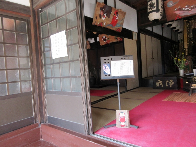 忠海の駅から歩いて10分程、少し道に迷いながらかぐや姫美術館があるという本立寺に着きました。寺の入口に美術館の表示が出ているので中に入りました。玄関は開いていて、入口から竹取物語の絵が描かれた額が掛かっているのが見えます。でもコロナの為、休館中とありました。見える範囲だけ覗いて寺を後にしました。