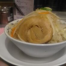 券売機で食券を購入します。野菜たっぷり且つ麺は太めです。