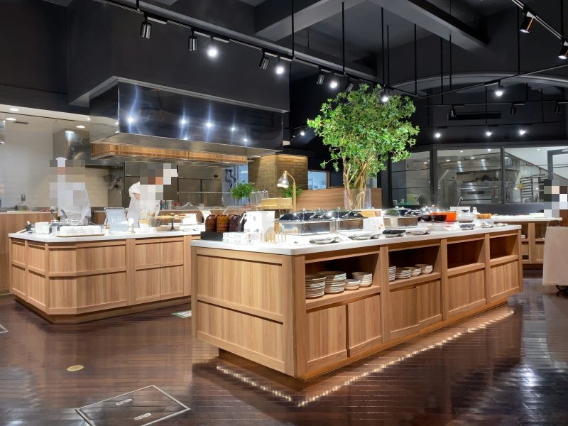 静かなフロアに多くの料理が用意されており、和洋中なんでもあって、ステーキ、魚のムニエルもその場で調理してくれます。