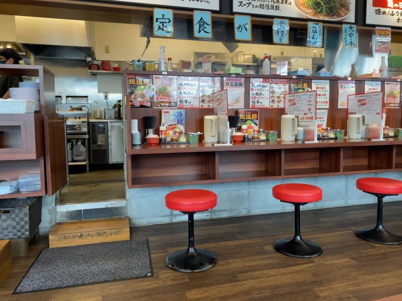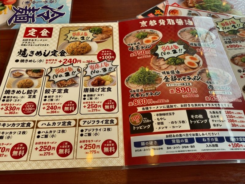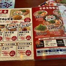 ラーメンに付けられるオプションが安いですね。焼きめし240円(税抜き)、焼きめし+餃子3個330円等々。男性はラーメンだけでは足りないと思うので、あり難いです。