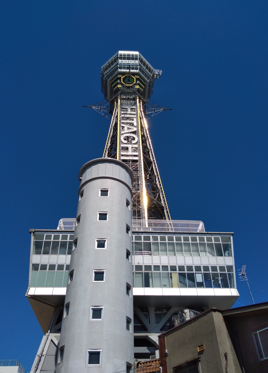 6月に入っても大阪の公の施設と同様に毎日休業が続いていました。通天閣を眺めるには、午前は東側(天王寺)方向から眺めると順光になりますが、写真撮影するには2階への円形エレベーターが邪魔になってしまします。