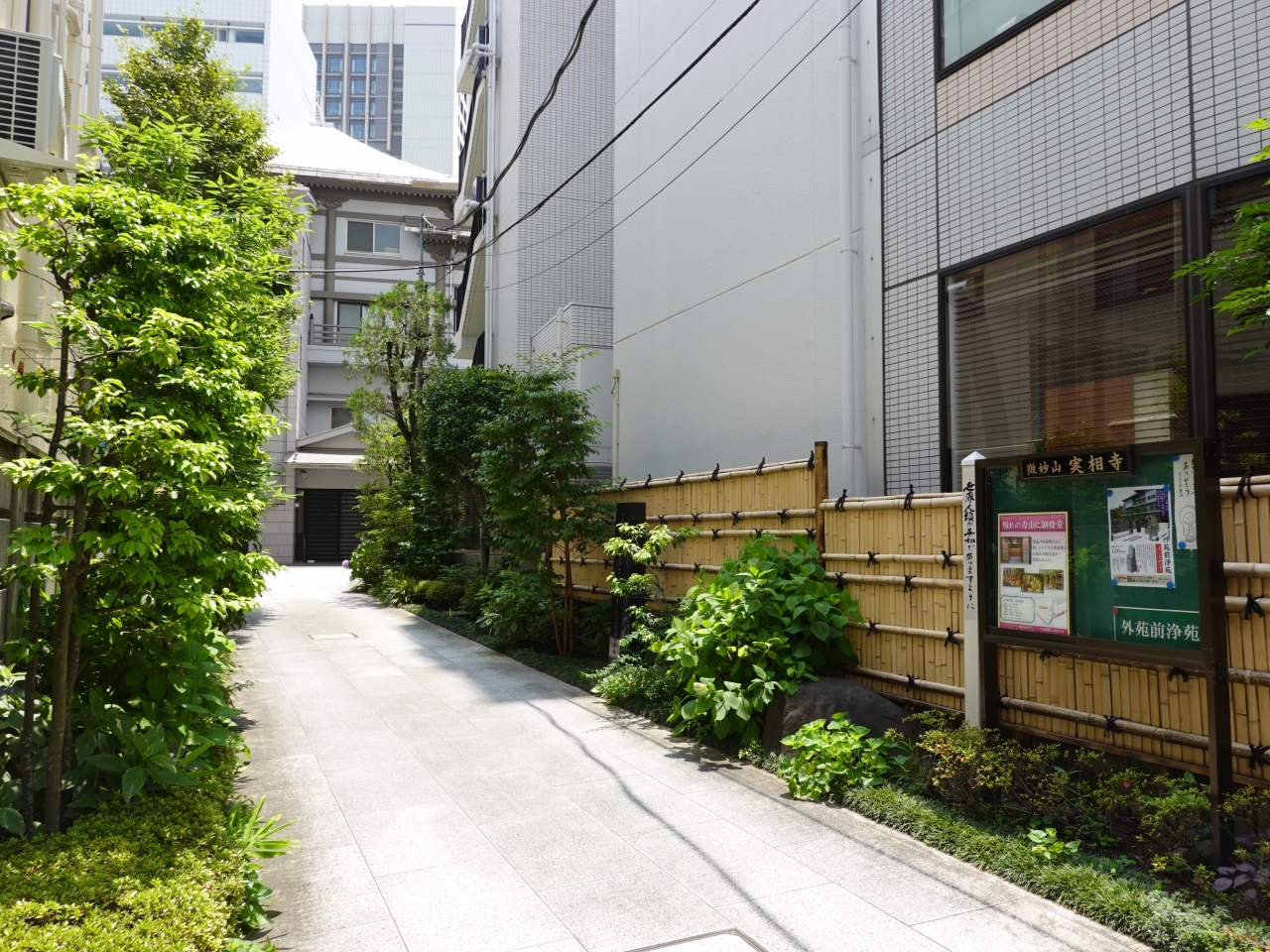 青山の通称「スタジアム通り」から熊野通りに分岐してすぐの場所にあるお寺です。石畳の参道の先には3階建ての近代的な本堂があります。実はその歴史は古く創建は17世紀の前半ということです。お寺としてはさほど特徴を感じませんでしたが、参道の途中にデザイン研究所の発祥を記す石碑があるのが青山らしくもあり、興味深く感じました。