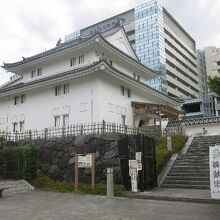 駿府城の二ノ丸の南西の方角に位置する櫓です。伝統的な木造建築工法を用いて可能な限り忠実な復元作業によって