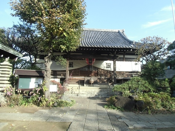 都立大学駅南口から南西へ約650mのところにある日蓮宗のお寺です。