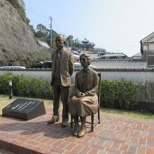 歴史民俗資料館の敷地内にありました。NHKの朝ドラ「マッサン」を見ていたので、俳優のイメージで見てしまいましたが、こちらは竹鶴夫妻がモデルなので雰囲気は違って当然と思いました。朝ドラの後で作られたそうなので、設置場所が新しい感じでした。