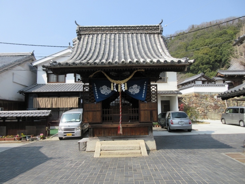 竹原の歴史的町並みの突き当りに建っていました。屋根の形が独特ですが、恵比寿さんが祀られています。映画のシーンにも使われているとのことですが、この胡堂や竹原の町並みは確かに絵になると思いました。お参りして帰りました。