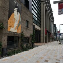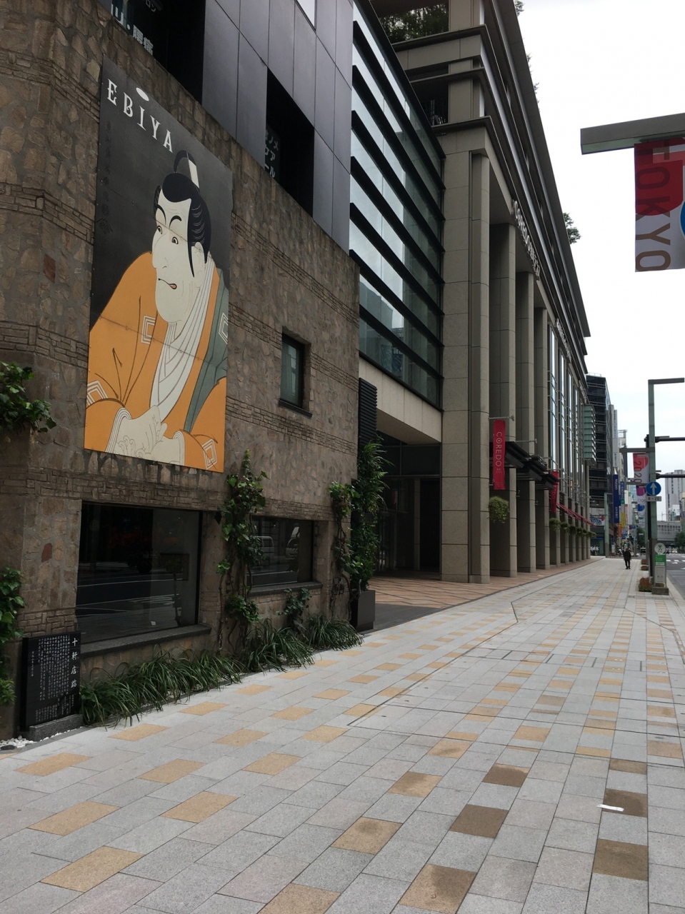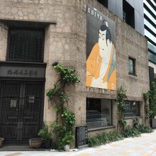 大通り沿いのビルの下にあり、ビルには江戸時代の人の顔が目立っていました。江戸時代には、正月の羽子板や三月の雛人形、五月の武者人形等、節句品を扱う店が軒を連ねていた地です。看板があるところには美術店があり洒落たビルでした。