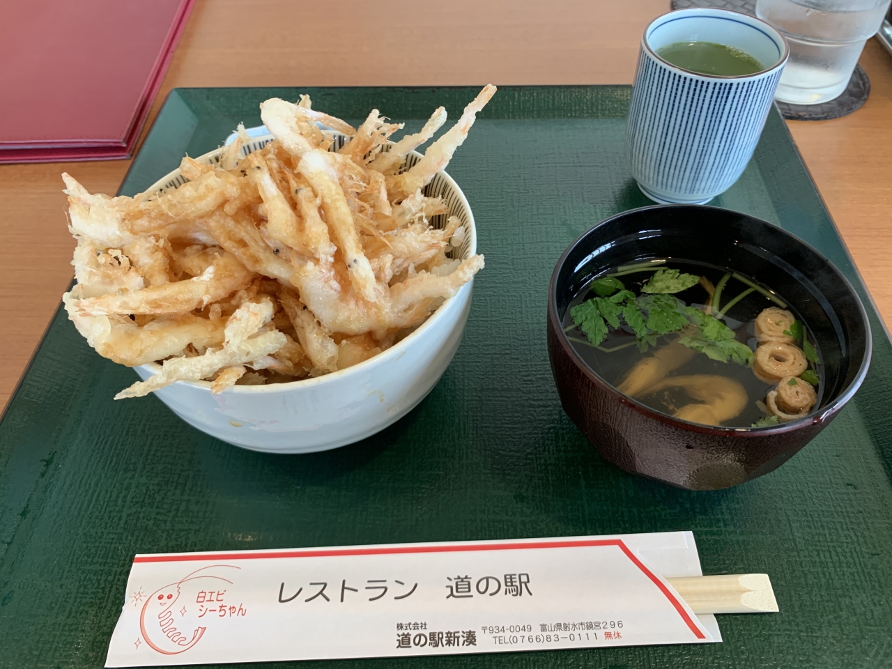 富山名物白エビのかき揚げ丼が食べられます。白エビオンリーのかき揚げ丼を食べました。普通のかき揚げに白エビが混ざっているかき揚げ丼もあります。白エビを堪能したいと思い、白エビオンリーの方にしましたが、けっこう甲殻類の食べ応えがあるので疲れてきて、普通のかき揚げの方にしておけばと思いました。白エビが得意な方にはお勧めです。