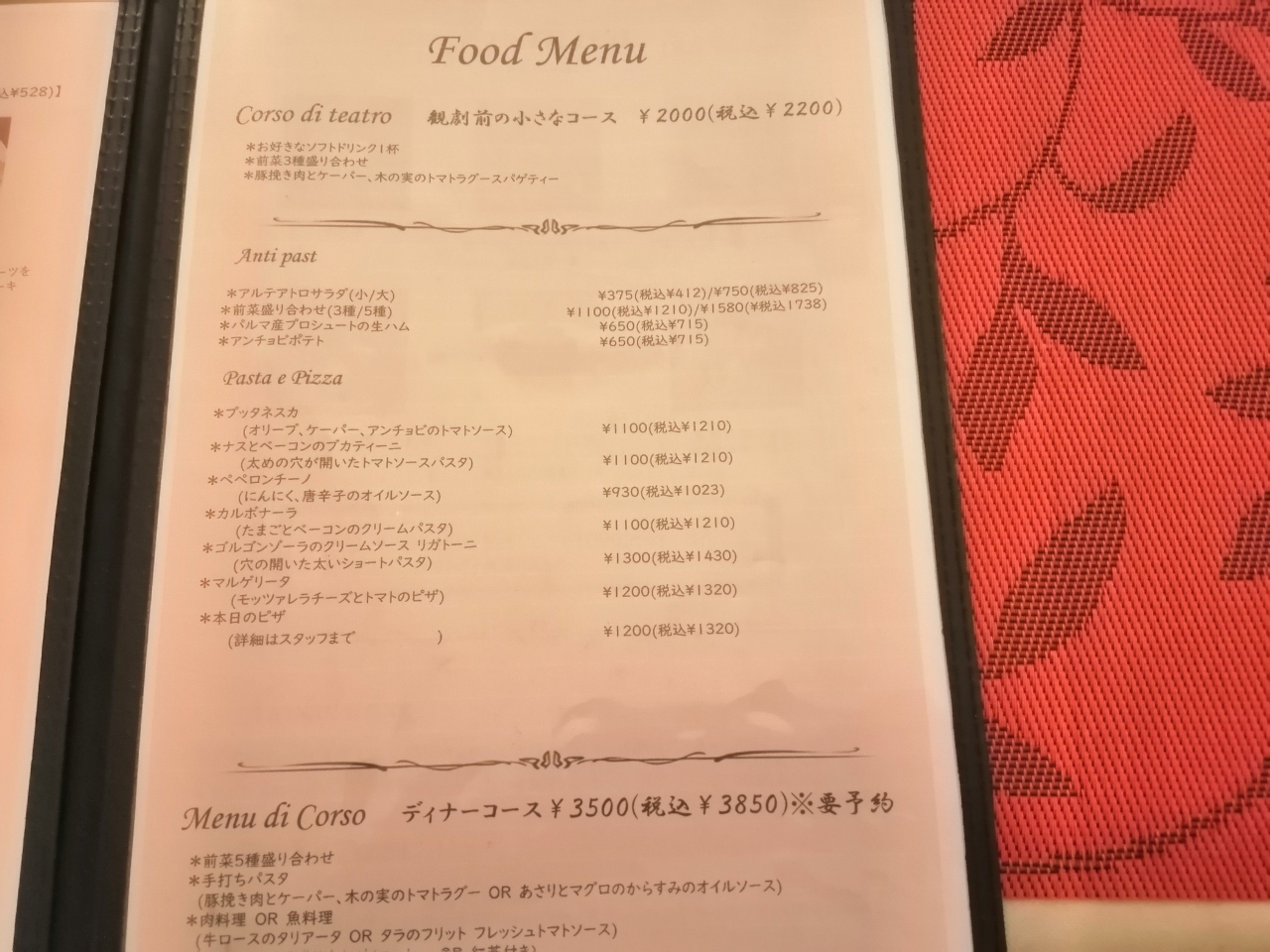 プチコース¥2200は前菜の盛り合わせとパスタと飲み物でしたが、量としては十分でした。