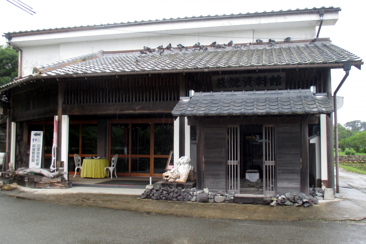 南門跡から進むと、お城の中とは思えない普通の道になり、いくつか萩焼の窯元がありました。そこを通り過ぎた先に、萩焼の販売店があり、2階に萩焼資料館がありました。江戸初期の松本窯や三ノ瀬窯の初期の古萩の逸品を展示している資料館とのことです。 萩藩御用窯時代の萩焼など萩焼の歴史が辿れます。