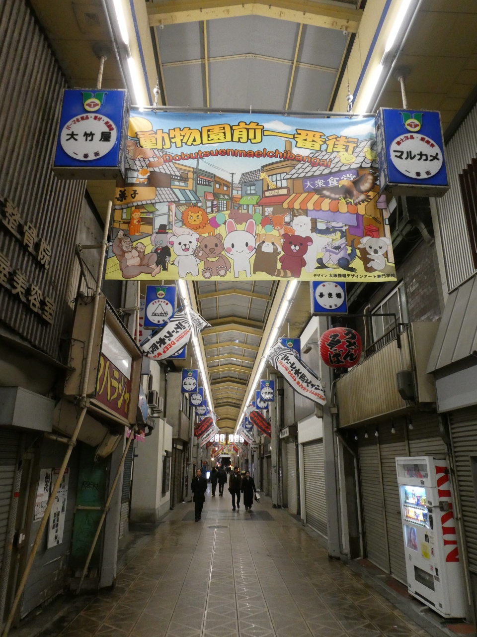 夜間ですがアーケードの照明は煌々と明るくシャッターがしまってる店も多かったですがその対比が面白かったです。
