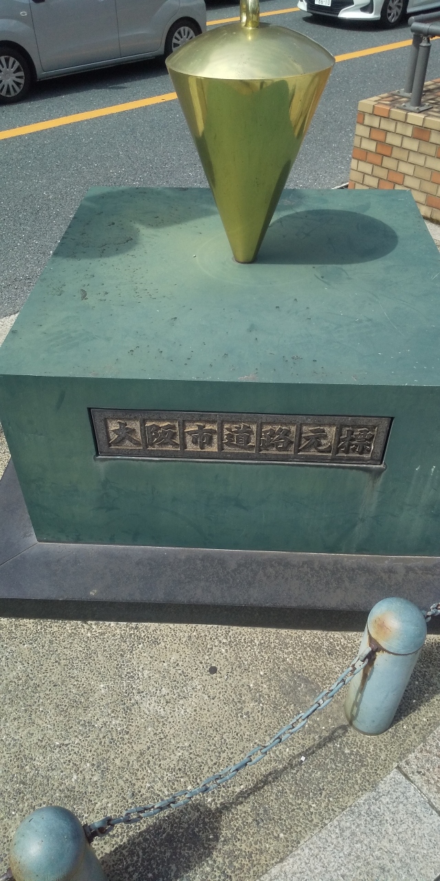 東梅田駅南側、梅田新道交差点にある道路原標です。ゴールドの円錐が逆さまに刺さっていて、まさにココですよと言ったモニュメントです。東京日本橋から始まる国道1号線東海道の終点であり、西へ向かう国道2号線山陽道の起点でもあります。さらに国道25号線など、7つの街道の起終点になっています。