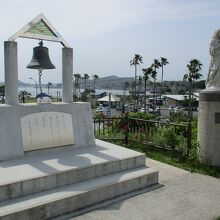 天草観光で立ち寄った天草ミュージアムの建物を出た近くにありました。ちょっとした高台になっているので、海も見えてなかなか眺めの良い場所に設置されていました。すぐ隣にはマリア様がキリストを抱いた像もあって、愛の鐘にとてもふさわしいと思いました。