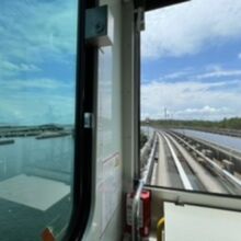 お昼頃のタイミングだったので、ちょうど空いていて先頭車の一番前の席に座れました。