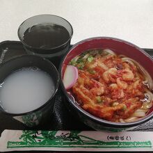 しかし若干の問題が…なんと店が1つしかありません。「どんや」という丼物とうどん、そばの店です。これでフードコートと呼べるのかはさておき、とりあえず昼食を食べることに…。食券機で「かき揚げうどん(税込470円)」を購入。