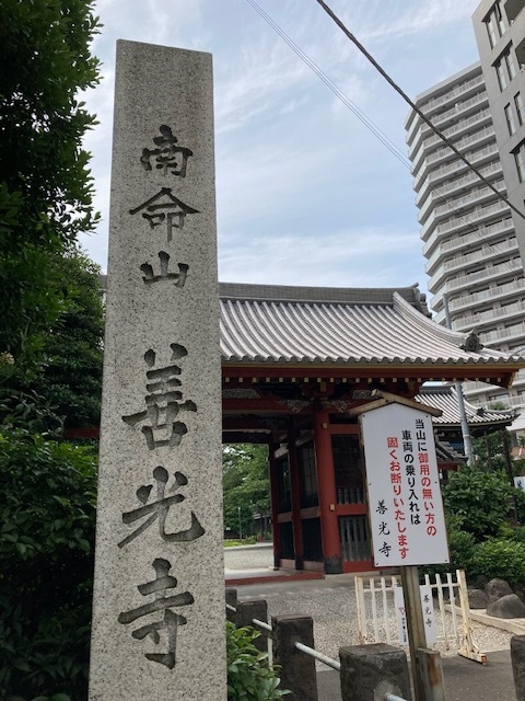 渋谷から南青山までを散策している途中に見つけました。渋谷から2キロほどの所にあります。信州の善光寺の別院だそうです。この場所にしては、広い境内に漂う静謐な雰囲気が魅力です。そして、山門のところにある風神雷神像も見ごたえがあります。写真は金網越しなので詳細は見えないかもしれませんが、意匠と細かい細工はとても見事です。