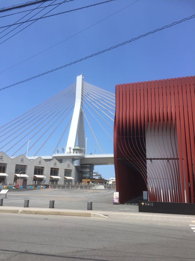 何はともあれ、目立つ橋です。そんなに役立っているようにも見えないのですが、貨物運搬の渋滞を緩和できているとの事。足のところから階段でのぼることができますが、結構な速度で車が走っているためちょっと橋を渡りきるには恐怖感があります。