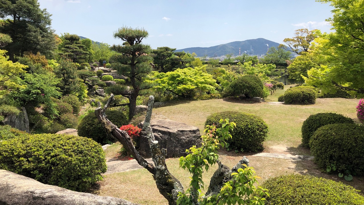 毛利邸の庭園です。毛利邸は、現在、毛利博物館として公開されています。庭園は広く、盆栽のように手入れされた木々が美しいです。庭園は400円、博物館は700円が必要ですが、共通券を買えば1000円とお得です。