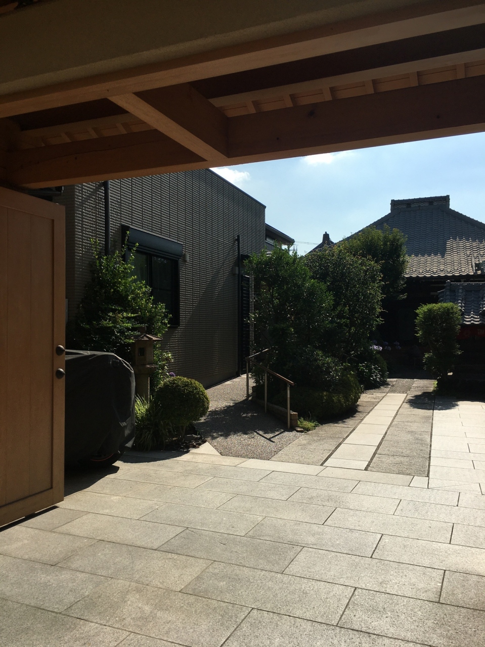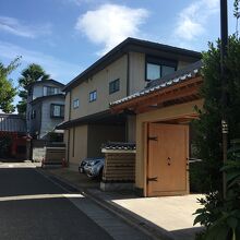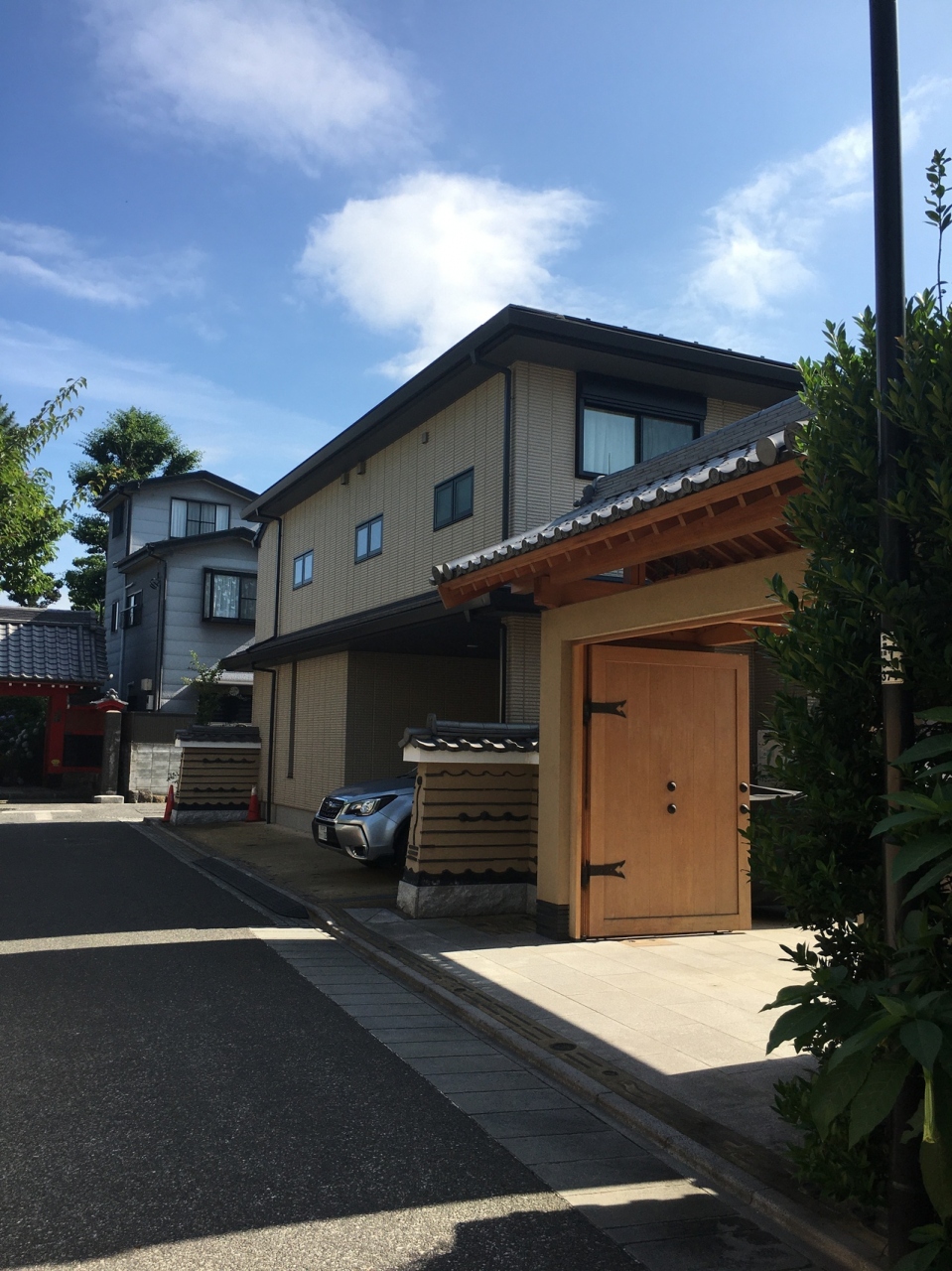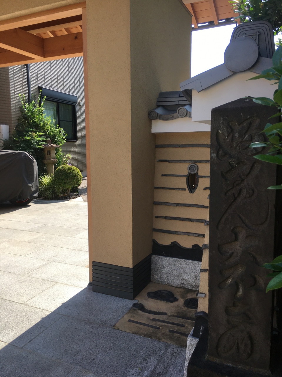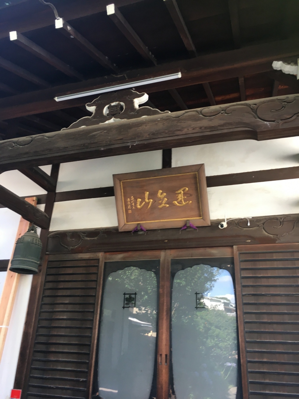 門が寺の門ぽくなく高級住居のような門構えで木の温もりを感じる門でした。横には年季入った石碑が建っていました。本殿の他に祠のような建物があり、赤い簾のようなものが目立っていました。草木が整備された境内でした。