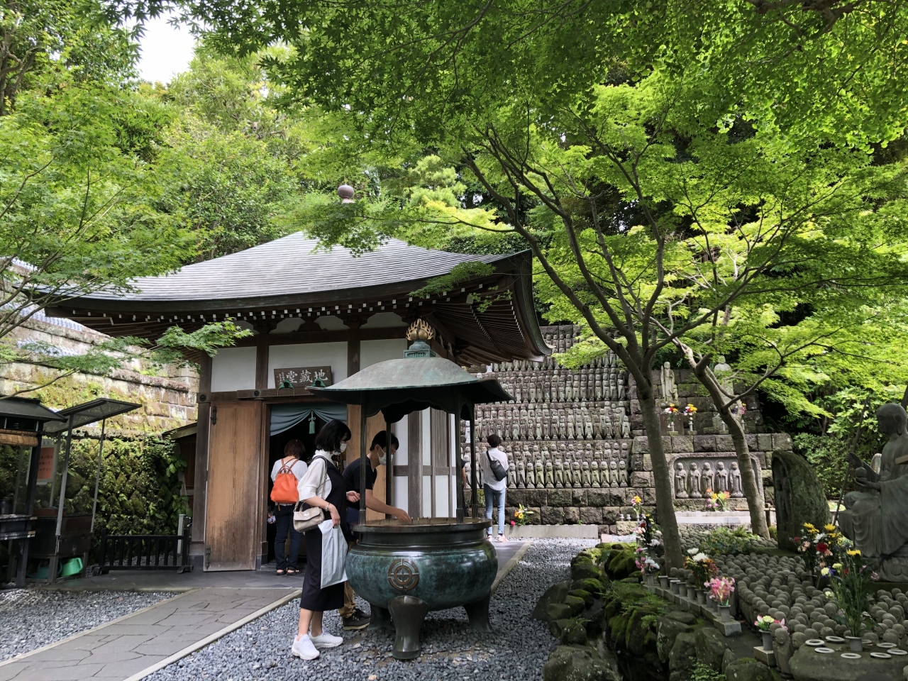 長谷寺の山門から本堂まで、石段を上っていきます。この石段のちょうど真ん中あたりに、地蔵堂があります。お堂の周囲(お堂に向かって、お堂の奥と右手)には千体地蔵(30センチほどの小さなお地蔵様)がぎっしりと並んでおり、この様は圧巻です。