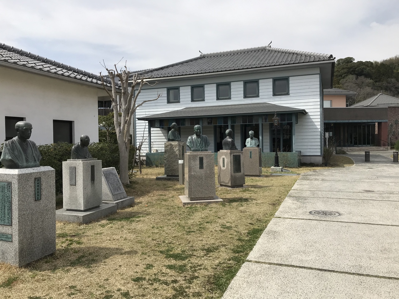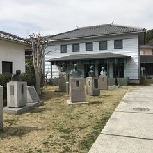 入口の庭には津山藩ゆかりの銅像が並ぶ面白い。