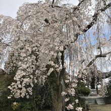 樹齢100年以上、高さ約15m、枝張り幅約18mの枝垂れ桜は、目を見張るものがあり非常に美しい。夜間はライトアップされるらしい。