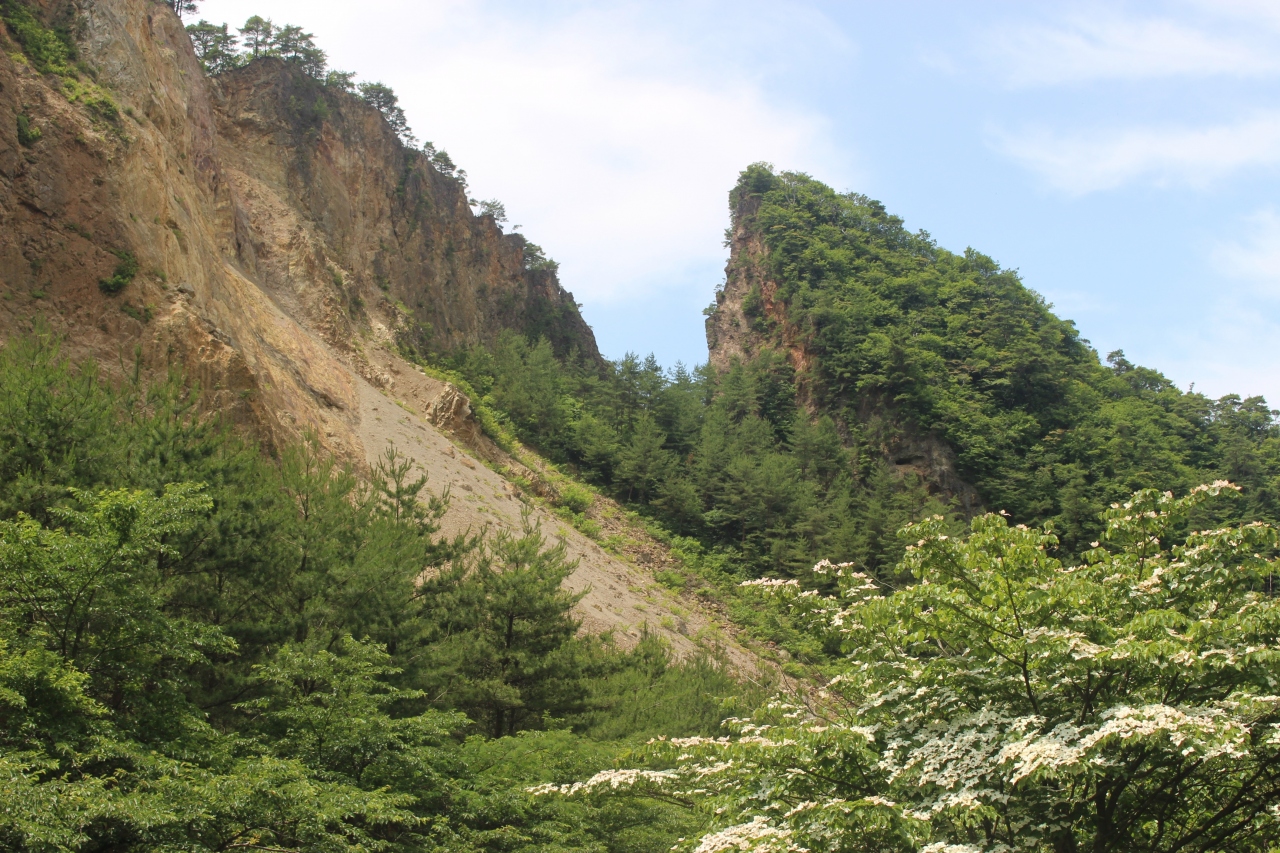 道路からは後ろ側からの山姿が見られます。