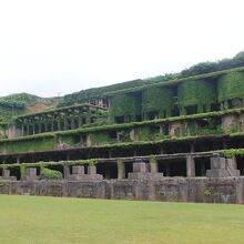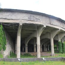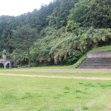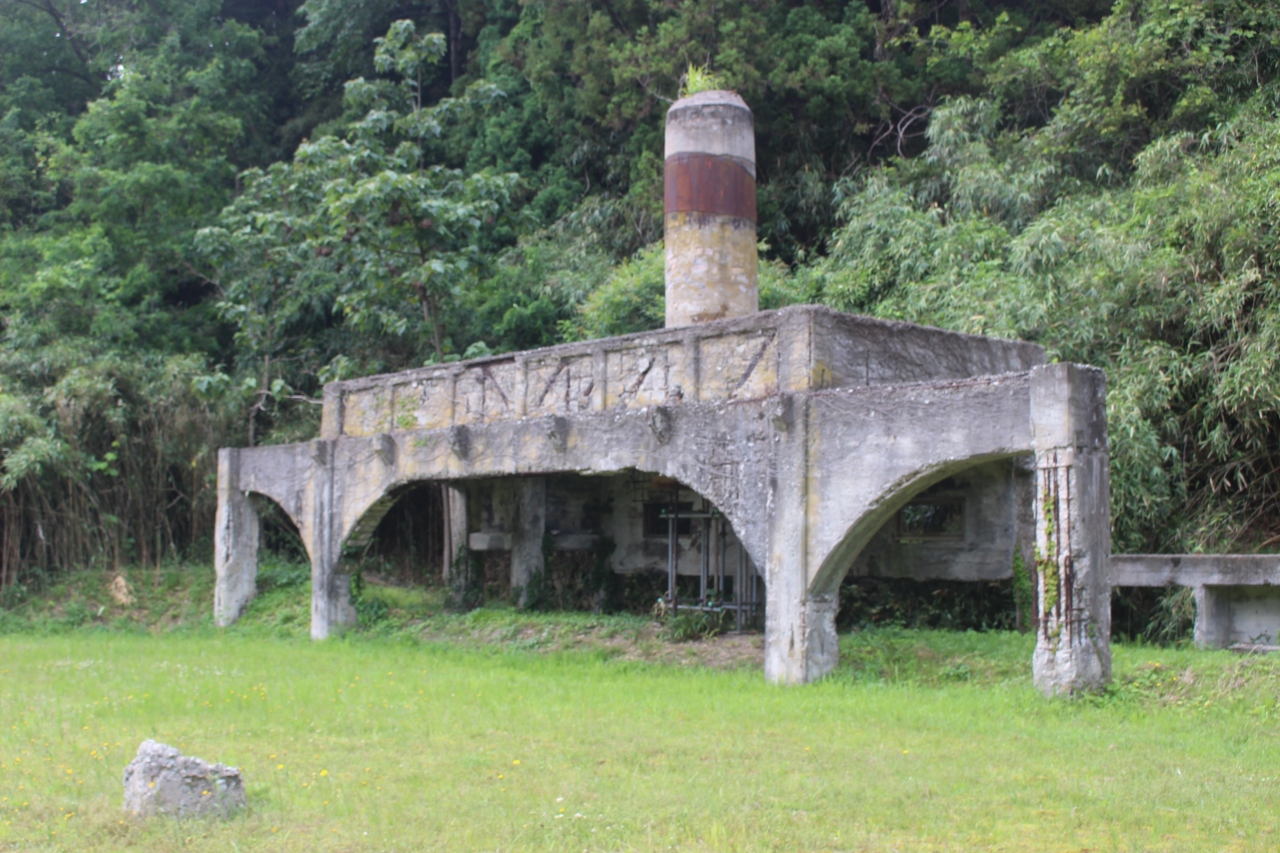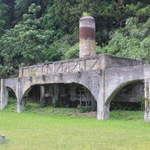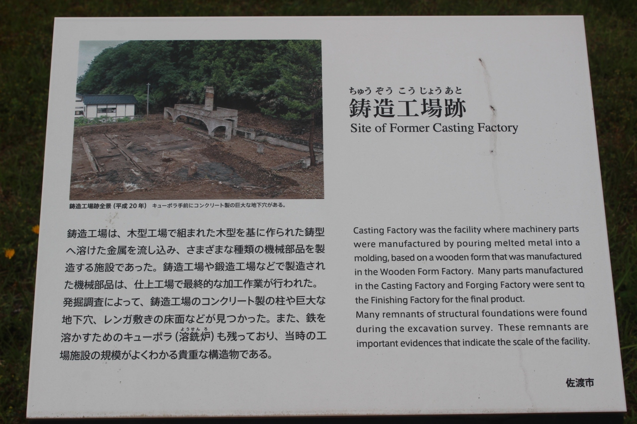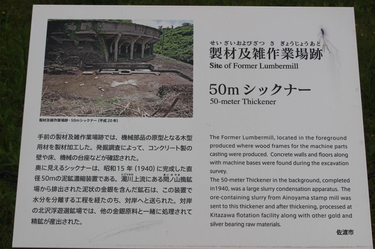 佐渡奉行所から坂道を降りてきた広い場所にかつての浮遊選鉱場の工場の廃墟が残っています。