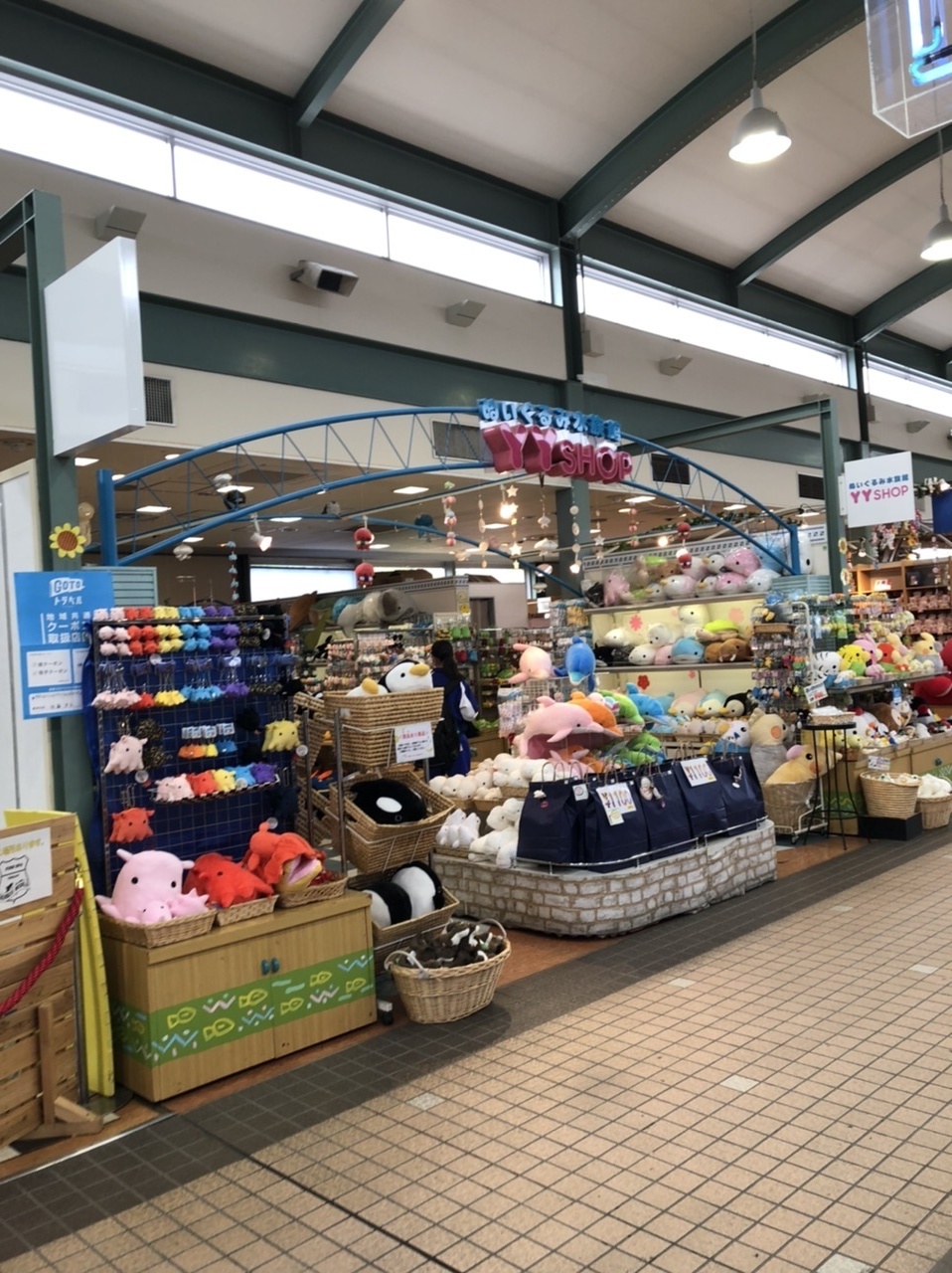 ぬいぐるみの専門店です。見た感じ、イルカなど水族館で人気のぬいぐるみの他に、なにやら得体の知れないぬいぐるみもチラホラ並んでいて、そのあたりも面白いのではと思いました。