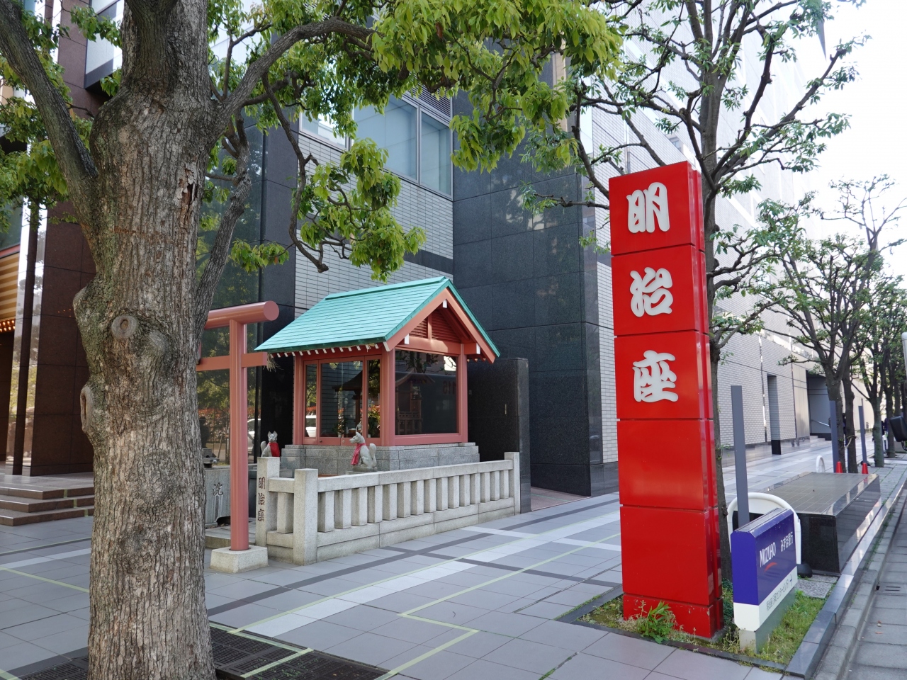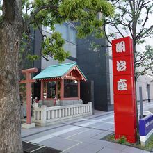 都営新宿線の浜町駅から、浜町公園に近い出口を上がって行くと明治座の南側に出てきます。丁度その場所に新しそうな笠間稲荷明治座分社があります。明治座の関係者の方たちが、公演の無事や成功を祈っている場所なのだろうと思います。公園が近いこともあるのか、訪ねた時は、小さいお子さんとお父さんが手を合わせていらっしゃいました。