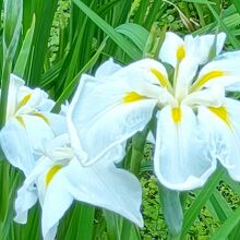 入って直ぐに池を回って菖蒲畑に、堀切菖蒲園と比べるとですが、きれいな菖蒲が咲いています。菖蒲は凛々しく、少しかよわな印象は私だけでしょうか。日本の花という感じです。
